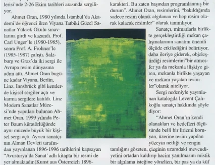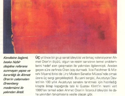 Ahmet Oran had his first exhibition in Vienna in 1999 at the Millî Reasürans Art Gallery.