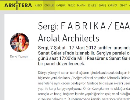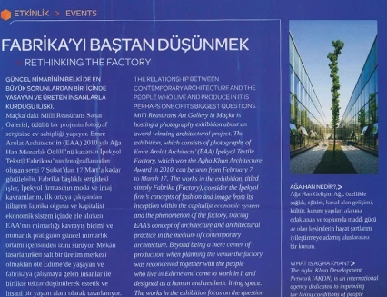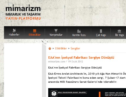 The exhibition of İpekyol Textile Factory which was designed by EAA-Emre Arolat Architects in 2010 and received the Aga Khan Architecture Award will be on view between February 7 - March 17 2012.