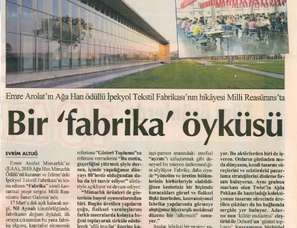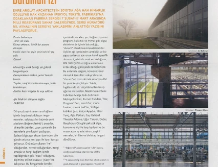 Delving both the context of a work of architecture and the world of its actors, “THE FACTORY” is an exhibition which tells the story of the İpekyol Textile Factory, a building designed by EAA-Emre Arolat Architects that received the Aga Khan Award for Architecture in 2010. The owners of the factory, the firm of İpekyol, are considered in terms of the relationship between Fashion and Image, the unfolding of the factory from its initial conception, and the interaction of the project with a capitalist economic system.