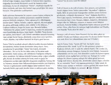 In the exhibition prepared by the artist for the Milli Reasürans Art Gallery, she examines the triangle of time-person-space based on her personal experience in Saint-Nazaire, a port city in France. In the relationship she has entered into with this city, which she has encountered several times over time, she questions the points of overlap in the city’s past and her own history, how a place can identify with a person and time, and the intensity of emotion and thought that this brings.