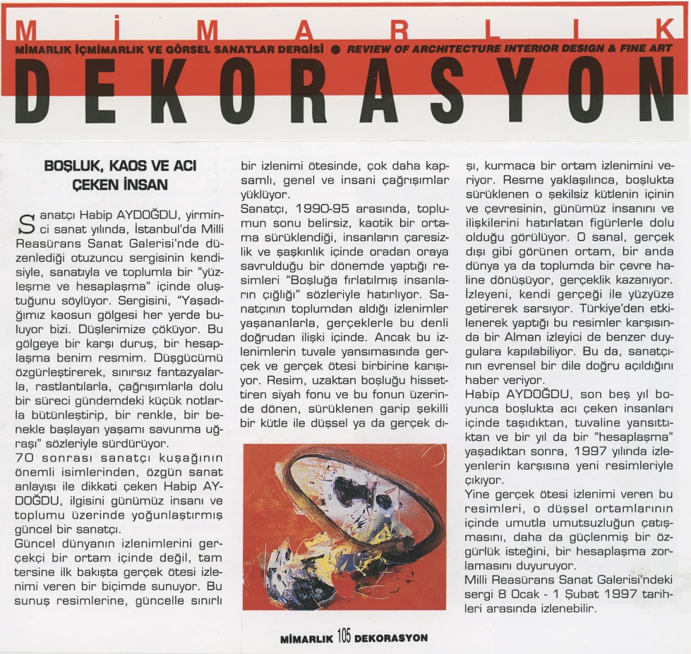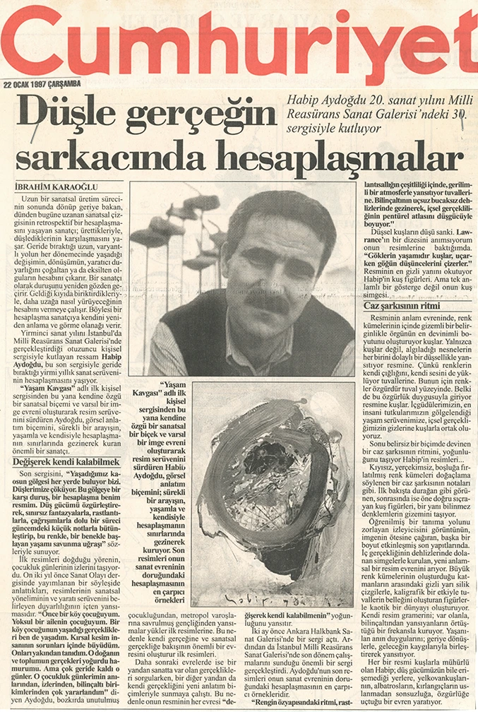 Millî Reasürans Art Gallery presents a comprehensive exhibition marking a significant moment in Habip Aydoğdu’s artistic career. Bringing together works from across many years of production, the exhibition unfolds within a field of expression that oscillates between dream and reality.
