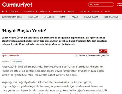 The exhibit “Life is Elsewhere" of Laleper Aytek, presents 40 of artist’s black and white photographs taken at various cities, islands or sea fronts in Turkey, France or Greece between the years 2016 and 2019.
