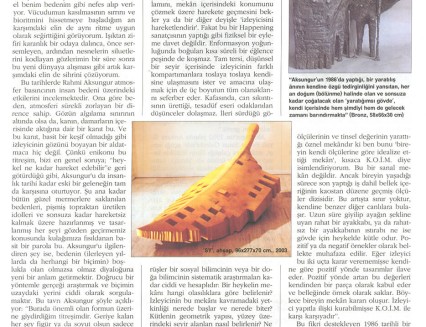 In Turkey, sculpture is generally seen as an abstract form of art which derives its references from its own internal structure and has no connection with its surroundings. Both artists and writers have long neglected to explore this art’s relationship with everyday language and the spectator, and to provide a clarifying description. No attention has been paid to the praxis of continually pushing sculpture into its own shell, which had a bad effect on its presentation in the public domain. Though not overtly stated, it was implied that sculpture, thanks to its three-dimensionality, has a privileged language and aesthetics. In this way the gap between sculpture and its spectators was made even wider. Within this closed system many points concerning the internal nature were left undiscussed: What is the difference between a natural, fortuitous, form and one that is given shape to and exhibited? What is the spatial problem being attached to sculpture, or on the contrary produced by it? Is it possible to say whether the size and form of a sculpture are an internal characteristic or part of its essence? Is it the sculptor - he or she- who discovers or generates what is not present to the eye? Apart from a few exceptions, this kind of question has not been addressed in the world of letters. The discussion which has taken place has been restricted to private conversations. This must be the reason for the inadequacy of the dialogue established by sculpture with the public.
