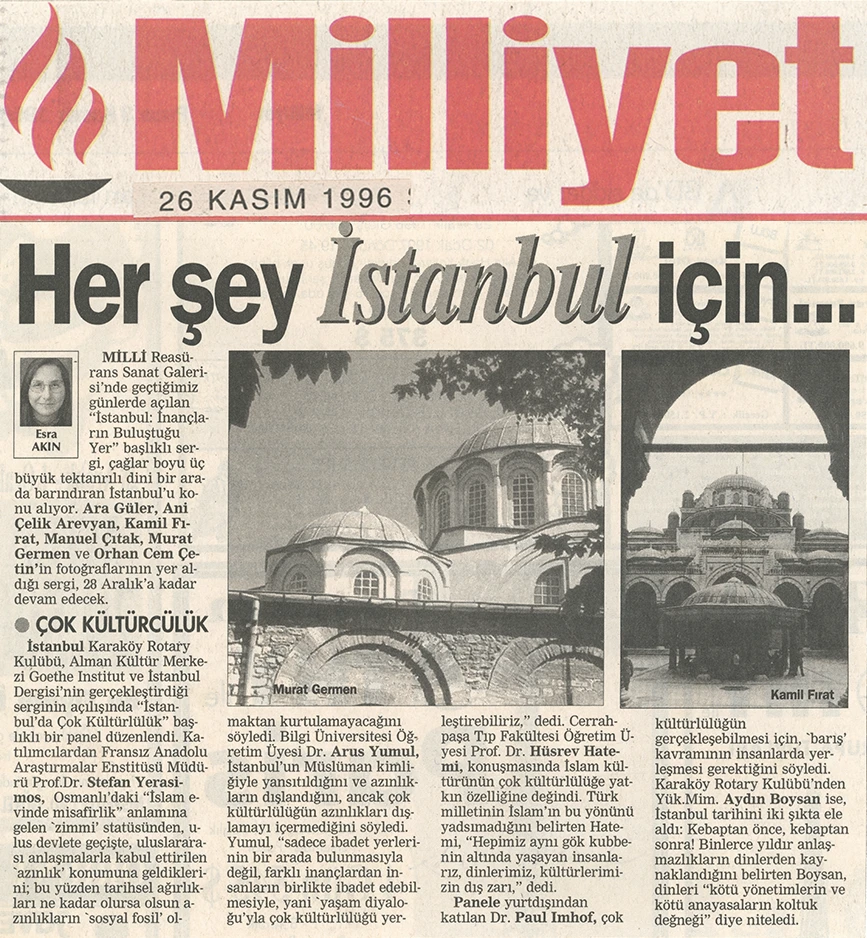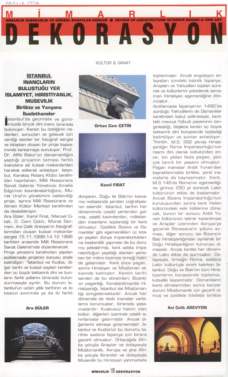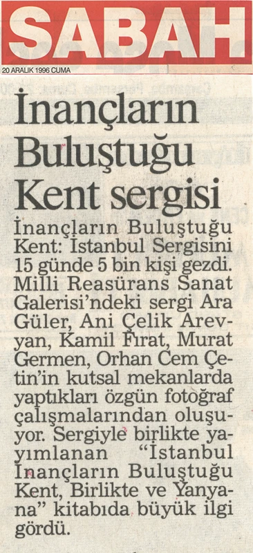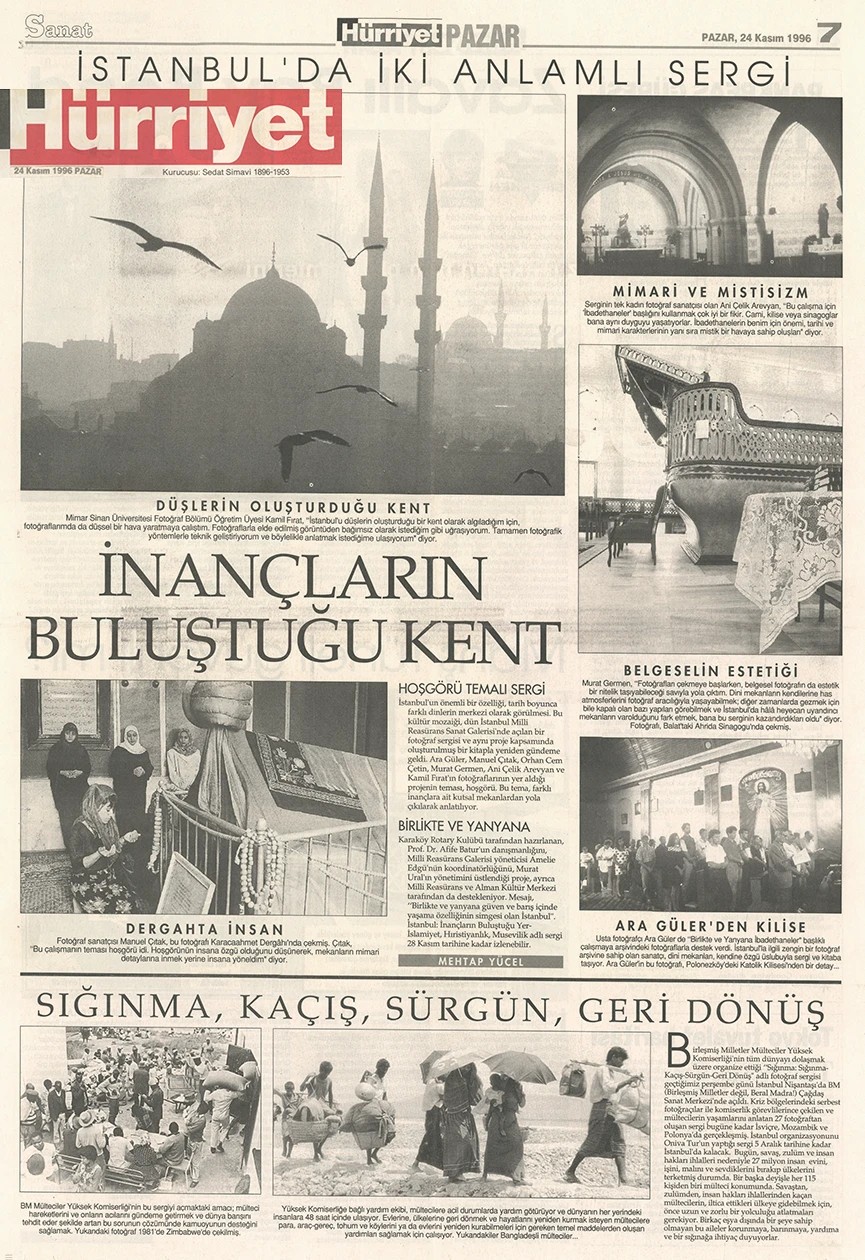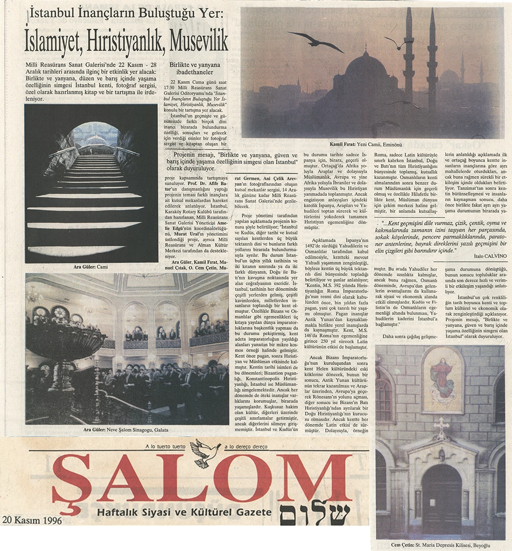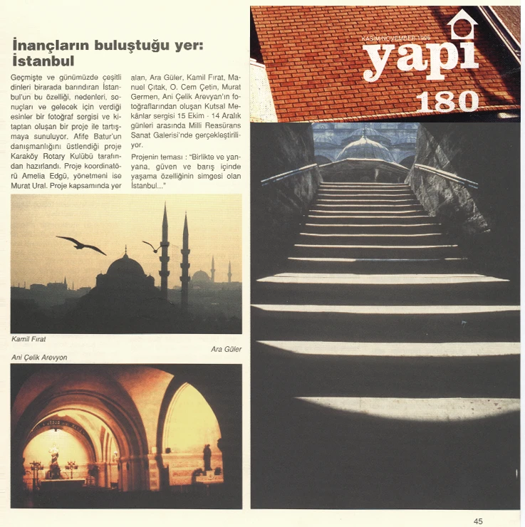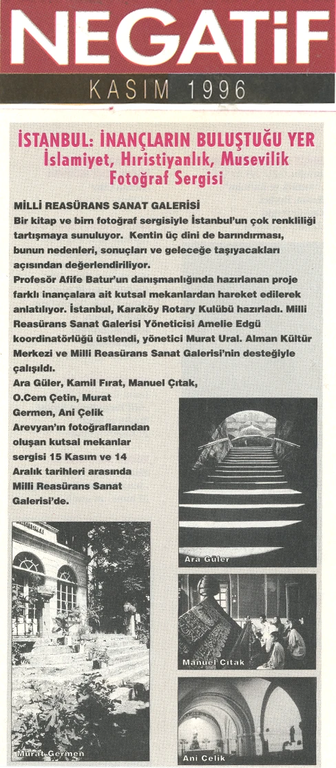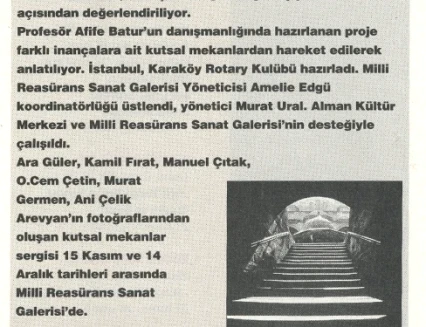 The exhibition of sacred places, composed of photographs by Ara Güler, Kamil Fırat, Manuel Çıtak, Orhan Cem Çetin, Murat Germen, and Ani Çelik Arevyan, has opened at the Teşvikiye Milli Reasürans Art Gallery. The exhibition will remain on view until December 28.