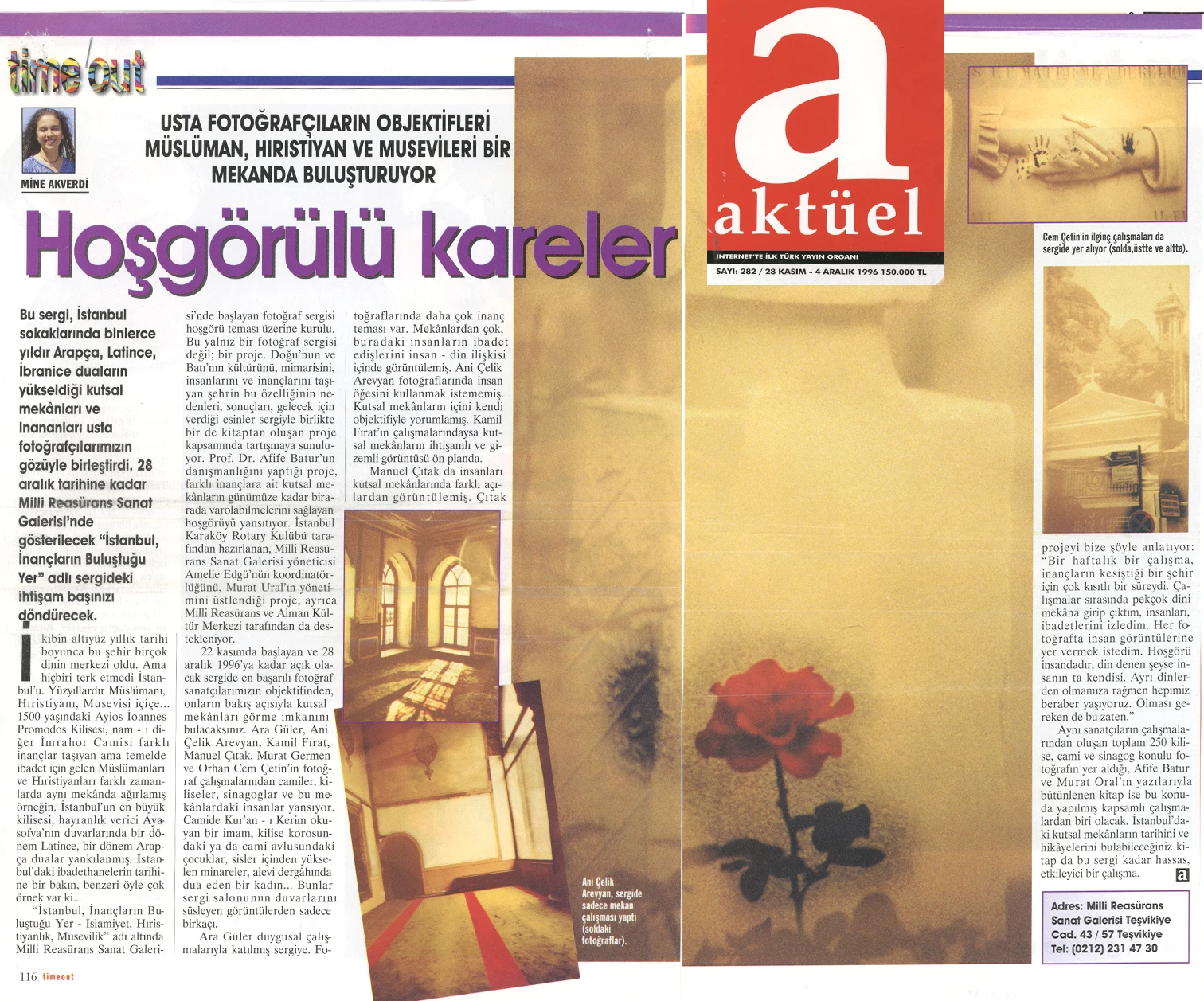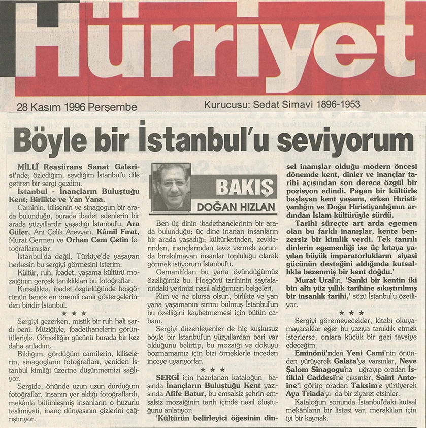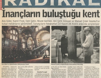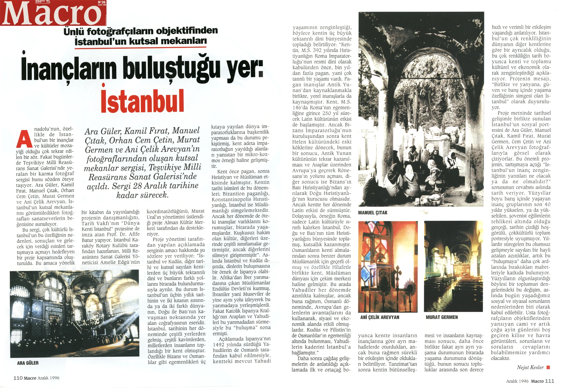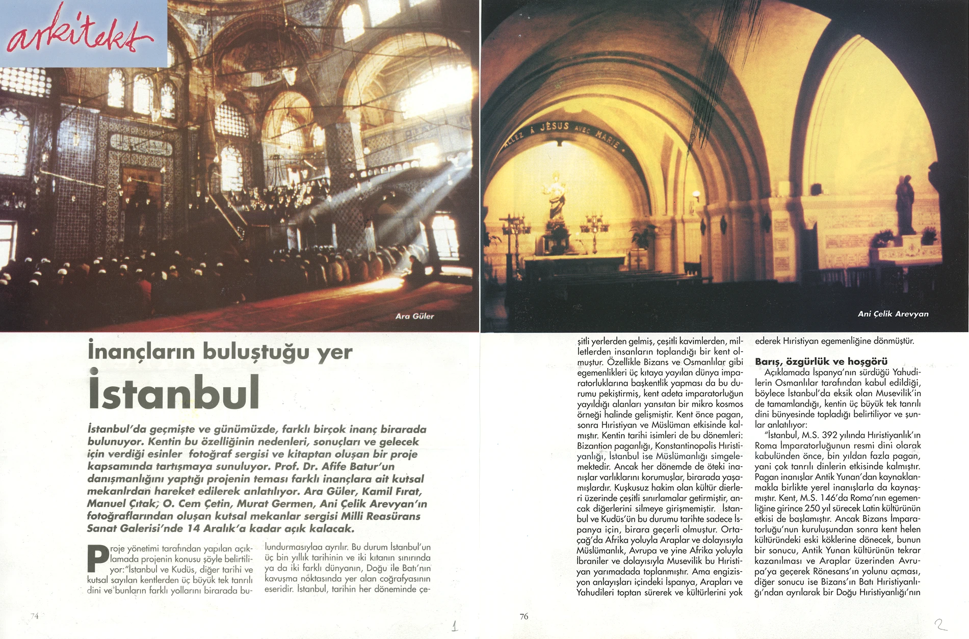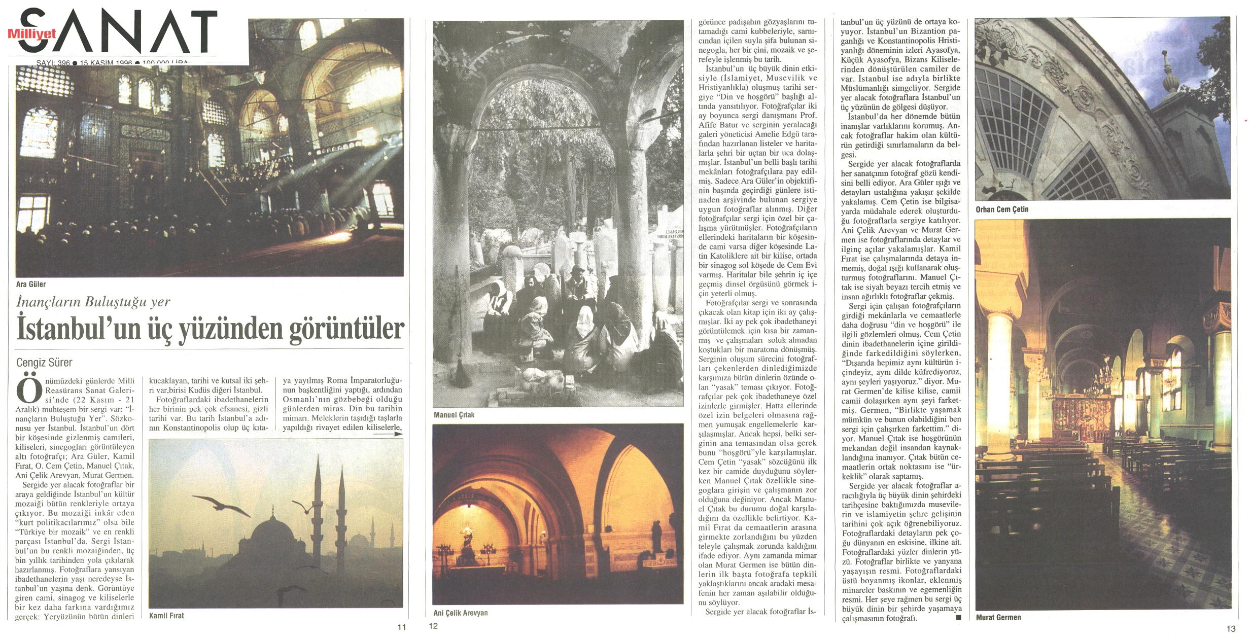 The exhibition of sacred places, composed of photographs by Ara Güler, Kamil Fırat, Manuel Çıtak, Orhan Cem Çetin, Murat Germen, and Ani Çelik Arevyan, has opened at the Teşvikiye Milli Reasürans Art Gallery. The exhibition will remain on view until December 28.