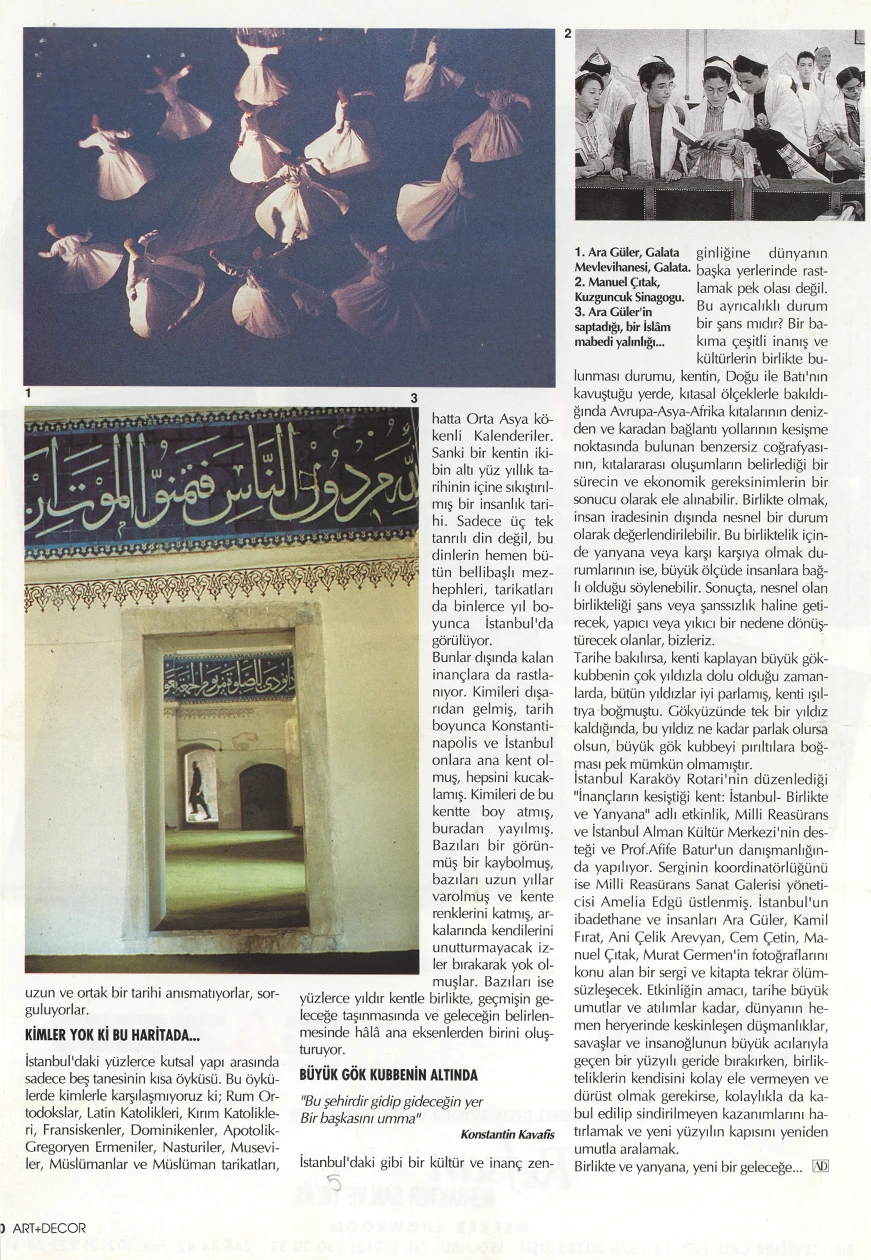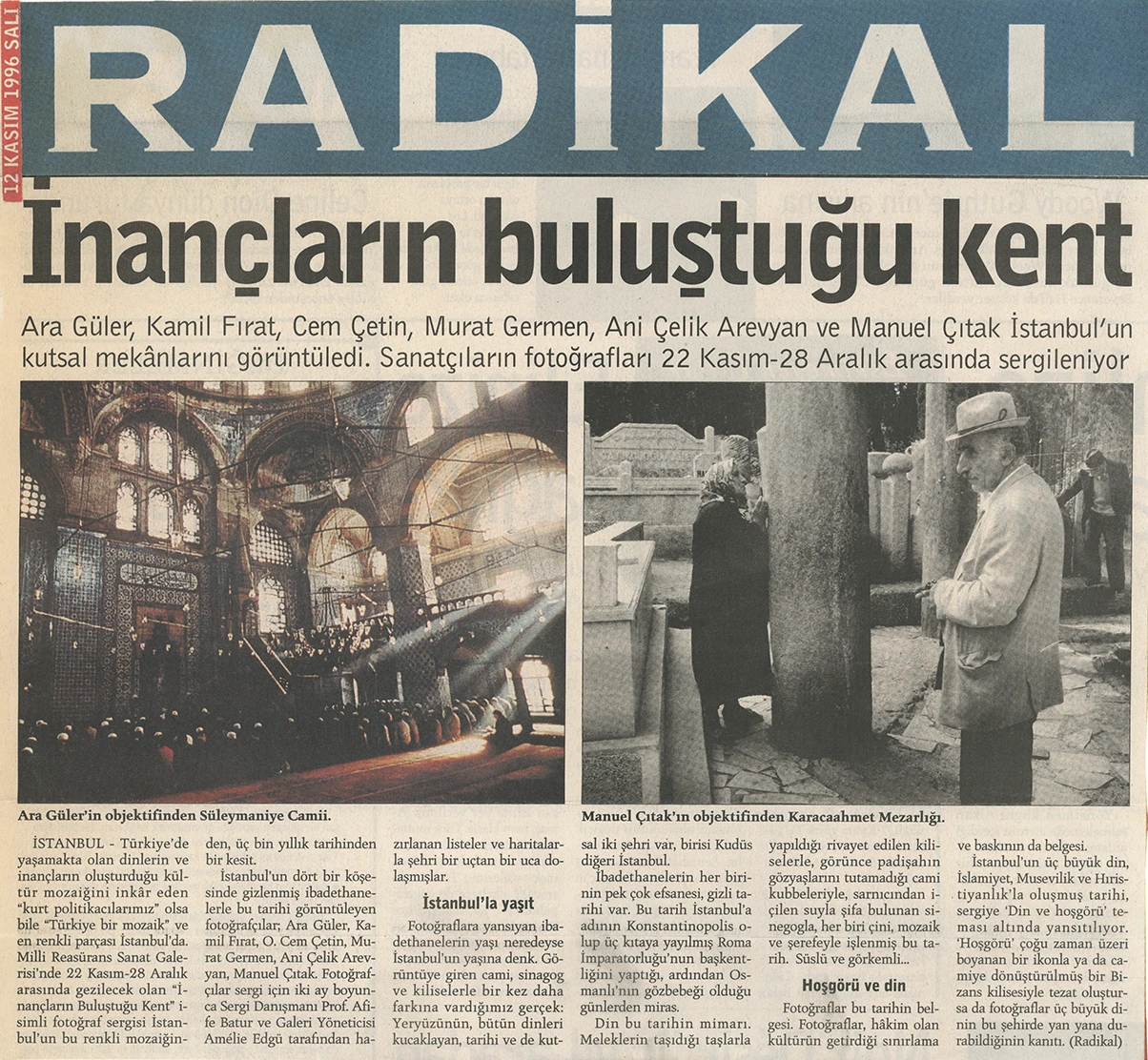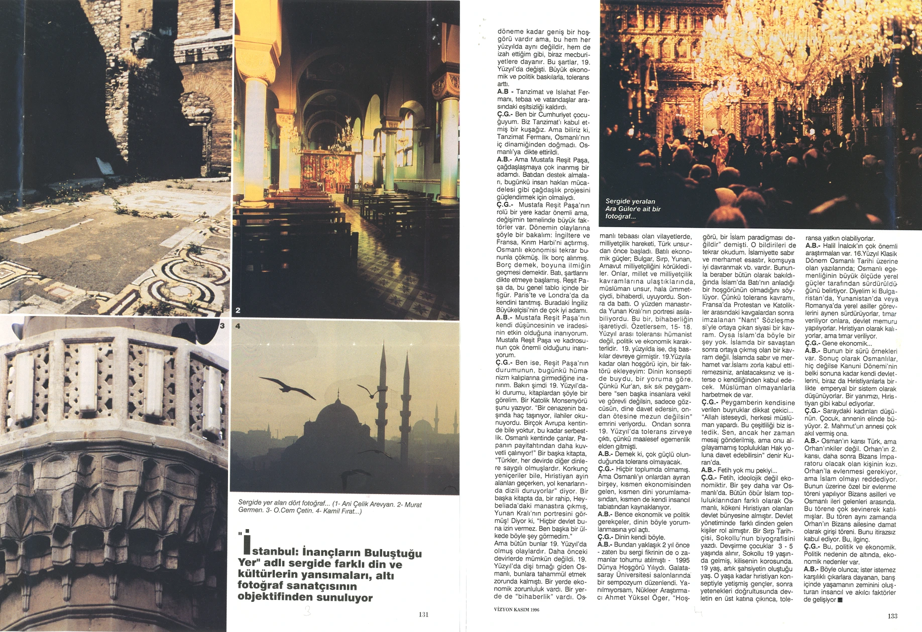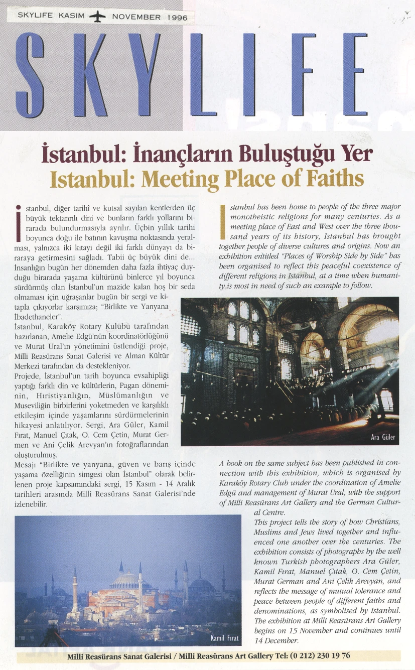 The exhibition of sacred places, composed of photographs by Ara Güler, Kamil Fırat, Manuel Çıtak, Orhan Cem Çetin, Murat Germen, and Ani Çelik Arevyan, has opened at the Teşvikiye Milli Reasürans Art Gallery. The exhibition will remain on view until December 28.