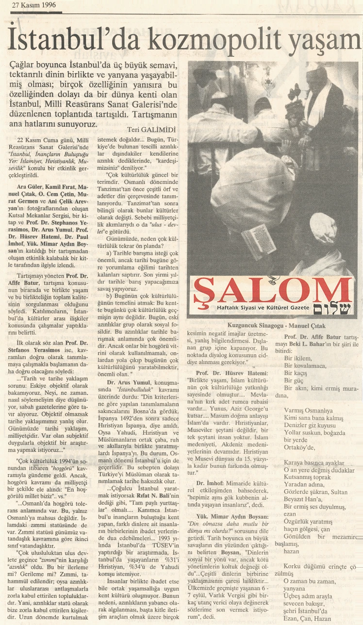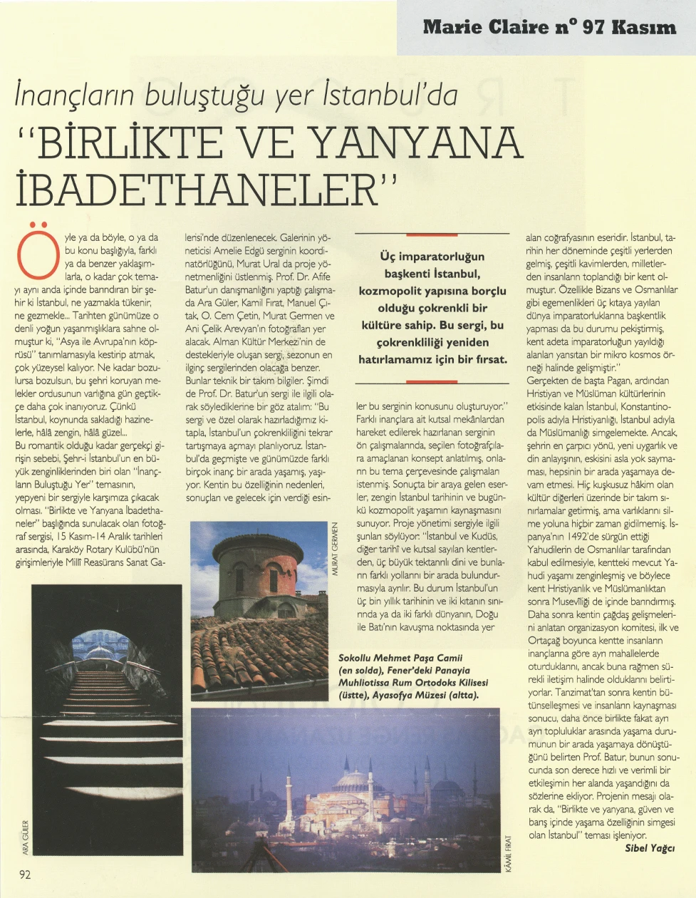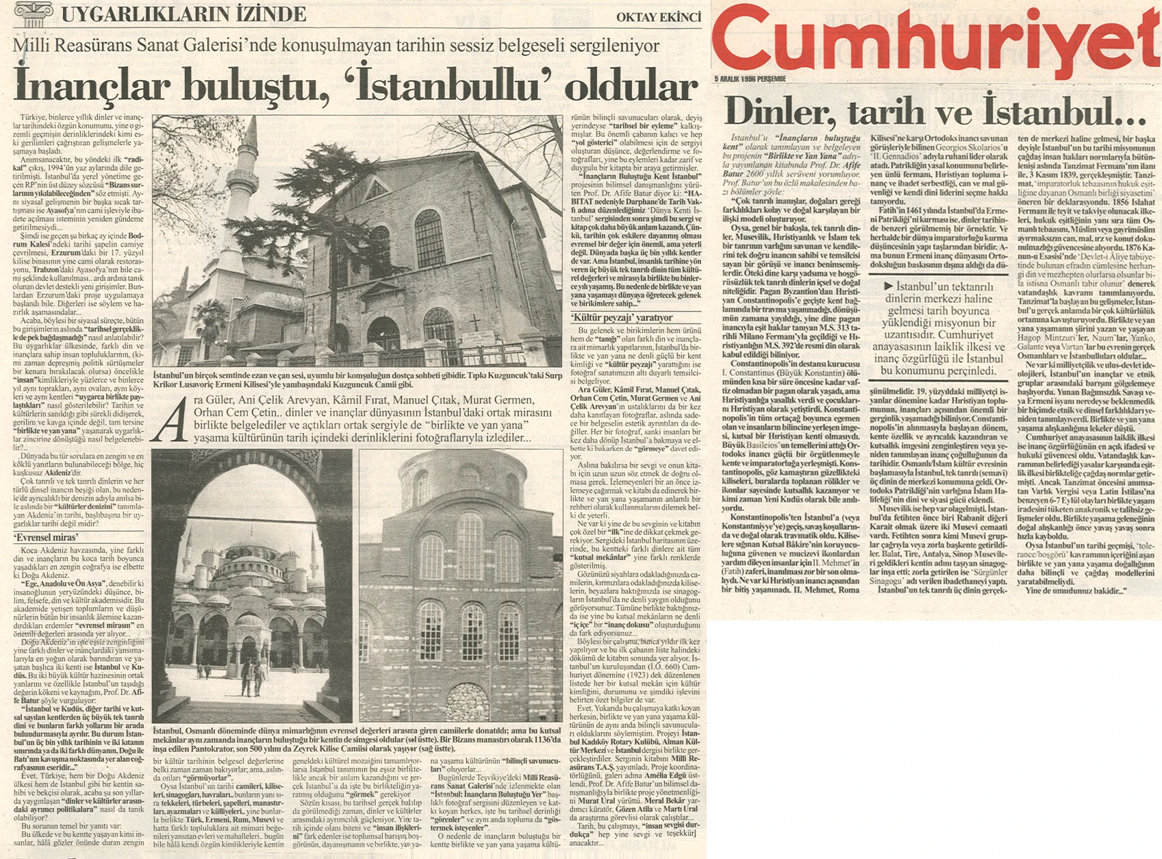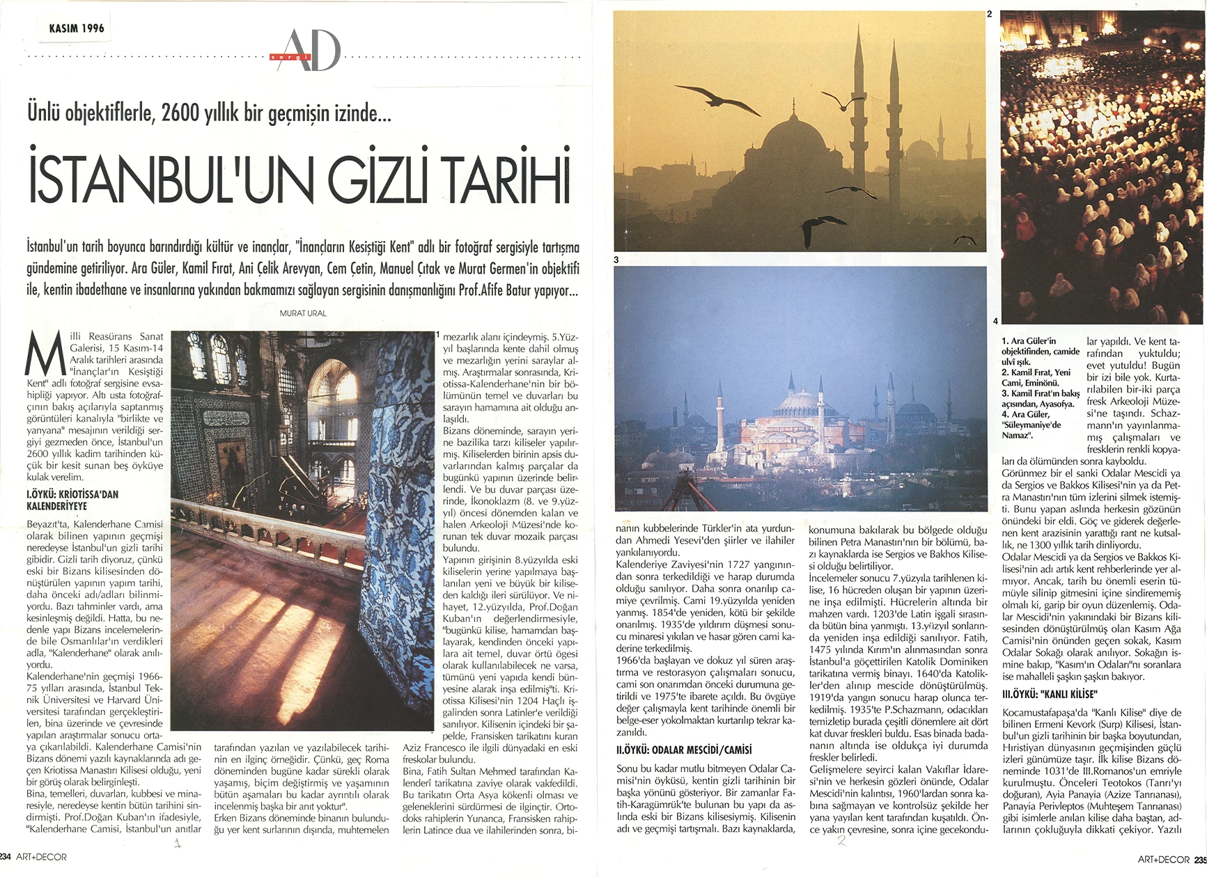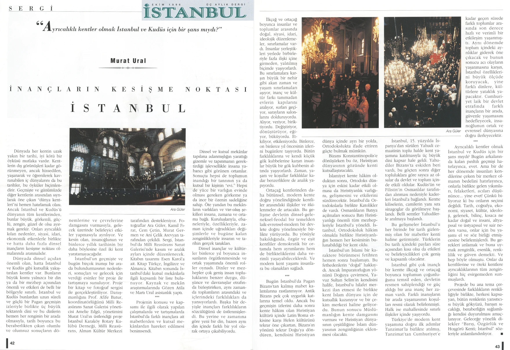 The exhibition of sacred places, composed of photographs by Ara Güler, Kamil Fırat, Manuel Çıtak, Orhan Cem Çetin, Murat Germen, and Ani Çelik Arevyan, has opened at the Teşvikiye Milli Reasürans Art Gallery. The exhibition will remain on view until December 28.