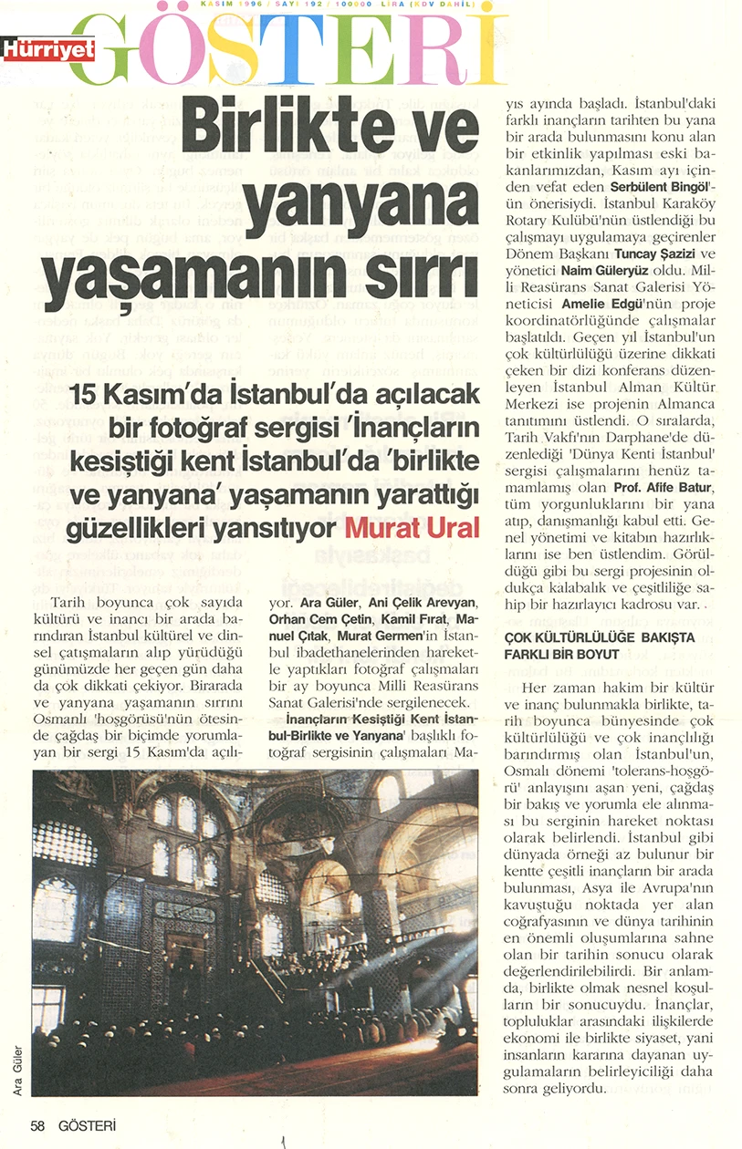 This exhibition addresses the dynamics that nurture Istanbul’s multicultural character and that will also influence its future climate of belief. The works presented in the exhibition offer a perspective shaped by a project that focuses on Istanbul’s sacred spaces in line with this aim.