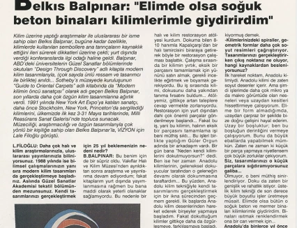 For this reason, creating something new from them is similar to tinkering with the DNA structure of a living organism and producing a new creature. In the end, what emerges is something that is hybrid.” Nevertheless even in Balpınar’s early works in which kilim motifs served as her point of departure, there is already an investigation of three-dimensional depth.