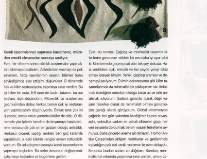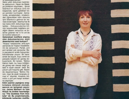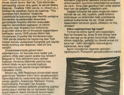 According to Balpınar, “Kilim patterns achieved their present forms having undergone a very slow evolution in which they were purified of all their superfluities down through the generations without any impairment of their essential symbolic appearance over the millennia.