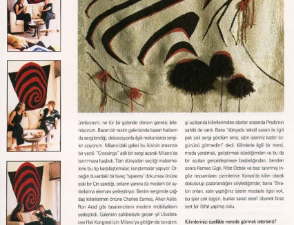 In her subsequent work, the artist began using her own geometric patterns in order to break away from kilim motifs.