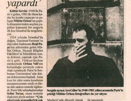 Thirty black and white photographs taken by Ara Güler and Mübin Orhon in Paris between 1948 and 1981 are also included in the exhibition.