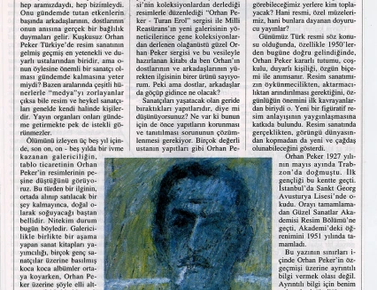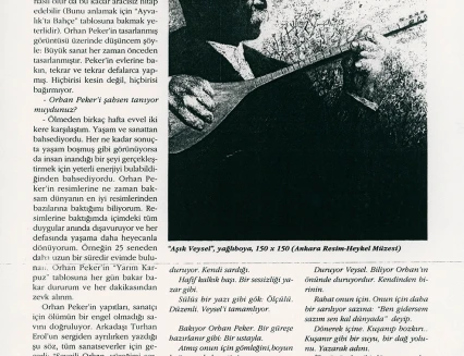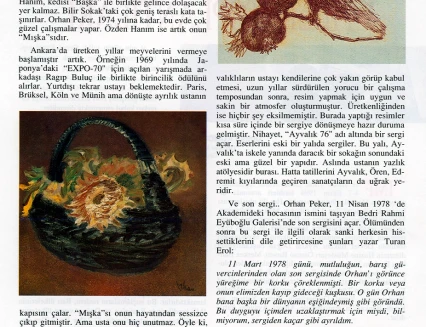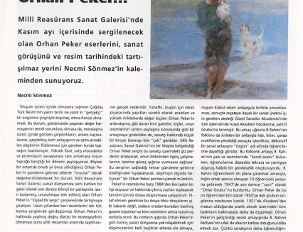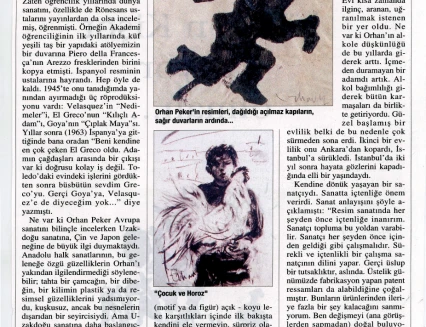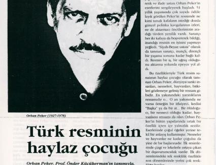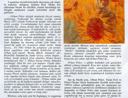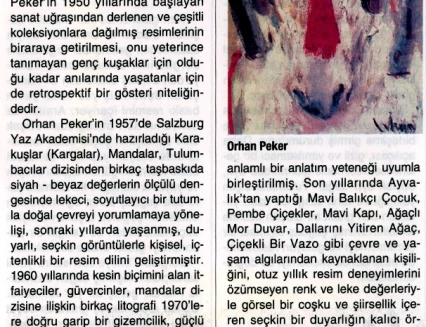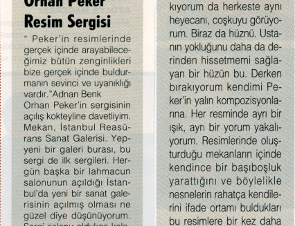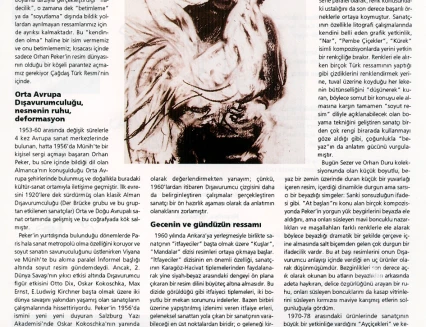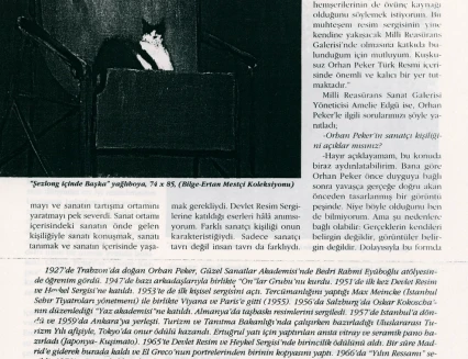 In his handwritten biography, written in the 1960s while he was in Ankara, Orhan Peker described his artistic approach as follows: "Above all, I believe in sincerity (an individualistic attitude) in the art of painting. I have never believed in those who hope to achieve true art through engaged means without finding their own personal language. What the French call poetic realist art has always intrigued me."