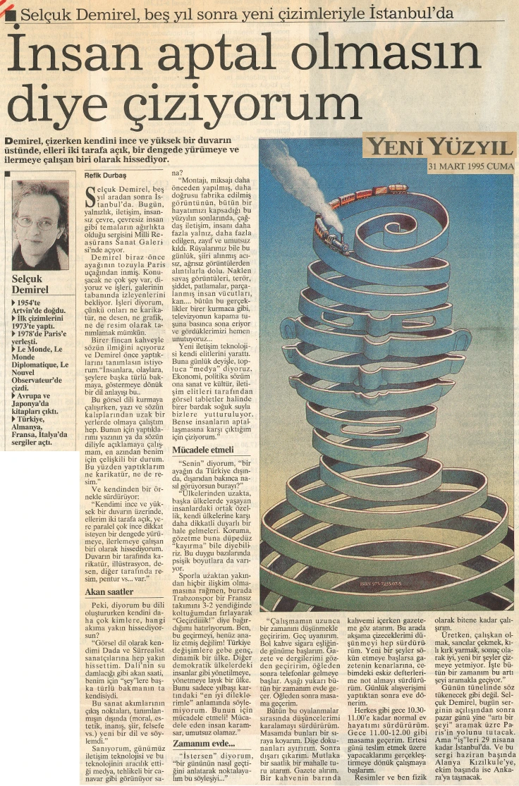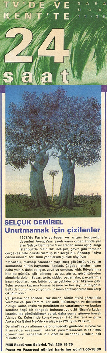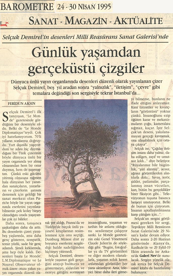 Selçuk Demirel, who settled in Paris in 1978 and whose drawings have been featured in prominent European publications ever since, is opening an exhibition at the Milli Reasürans Art Gallery after a five-year hiatus.