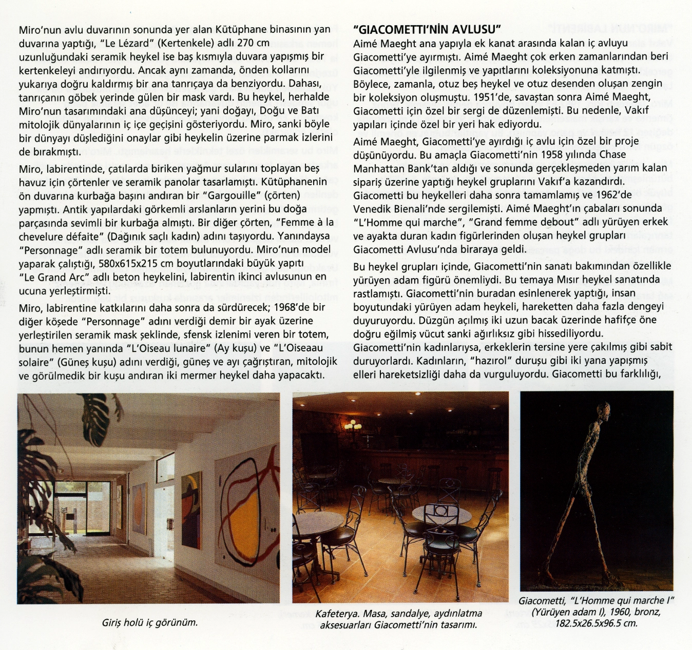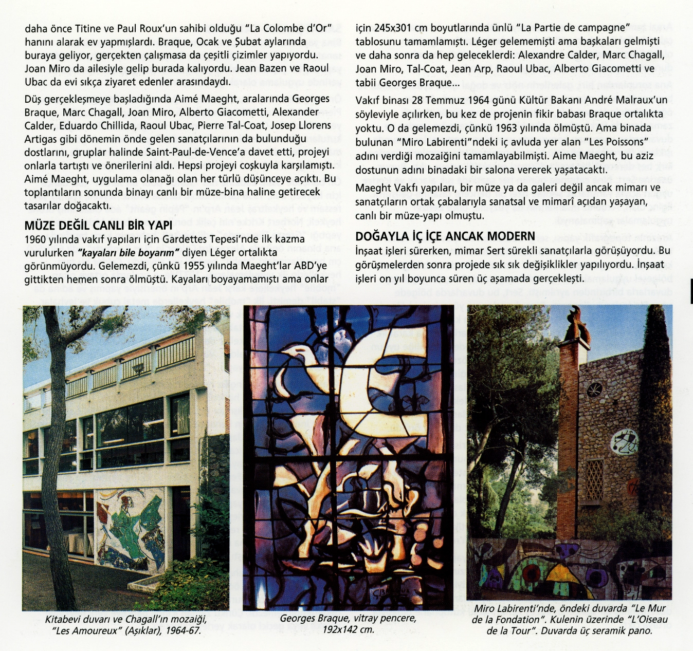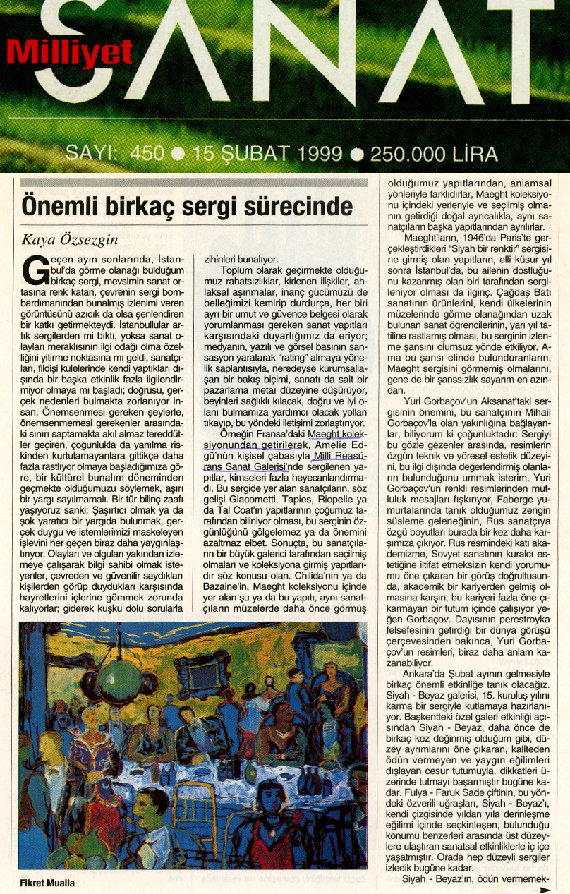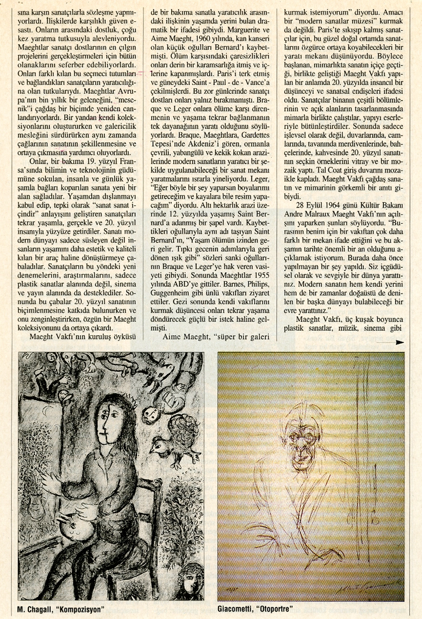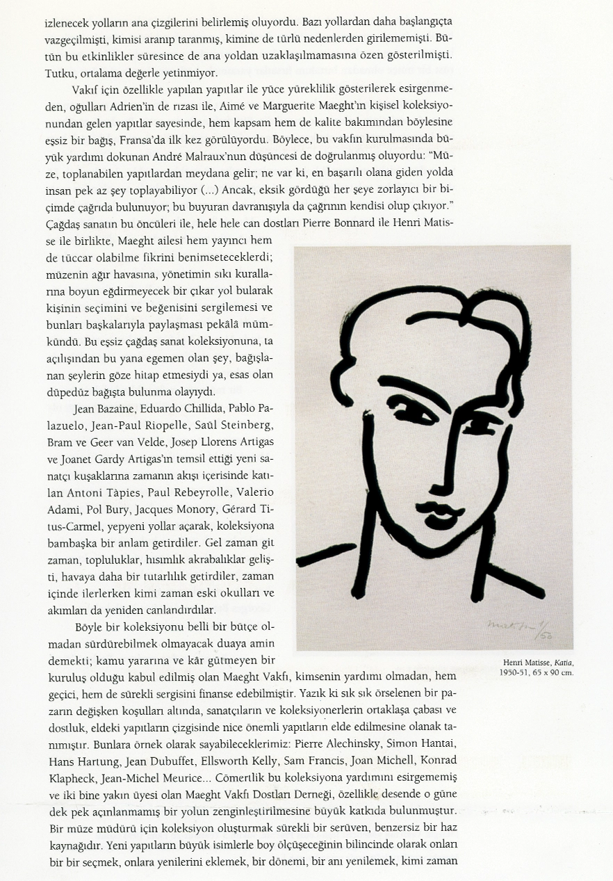 The Maeghts' 1946 exhibition "Black Is a Color," considered one of the most important exhibitions of contemporary art in Paris, will be held again fifty-two years later at the Milli Reasürans Art Gallery in Istanbul. Fifty-two years later, artists such as Bazine, Tapies, Ubac, Miro, Giacometti, Braque, Calder, Matisse, Chagall, Kuroda, and Chillida will be presented to Istanbul art lovers with their drawings, paintings, sculptures, and engravings.