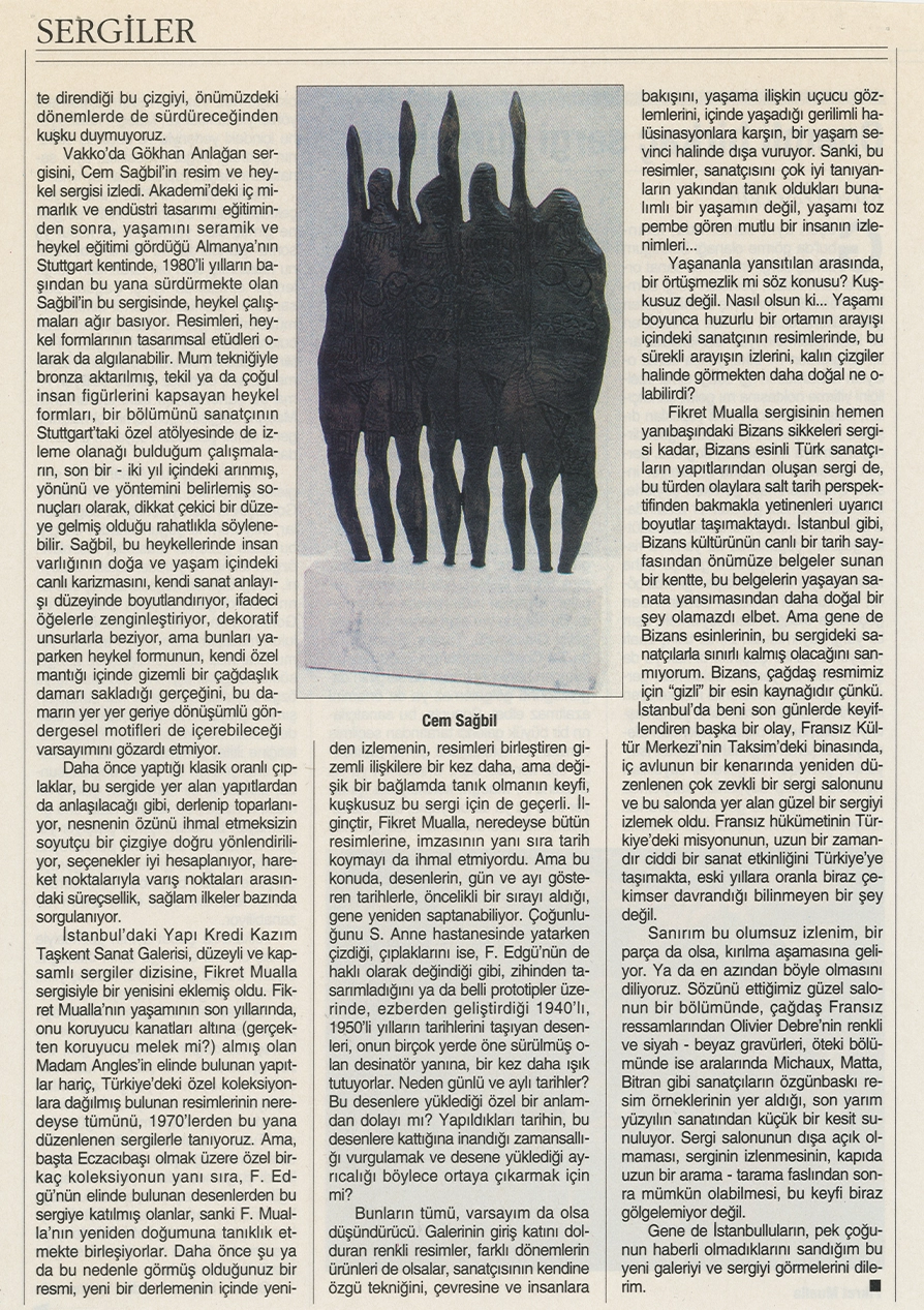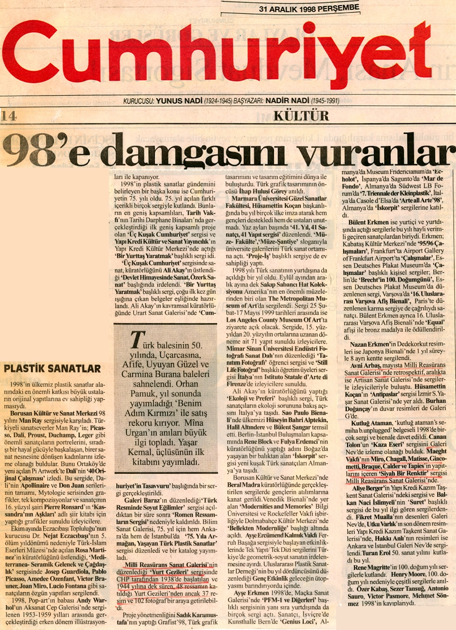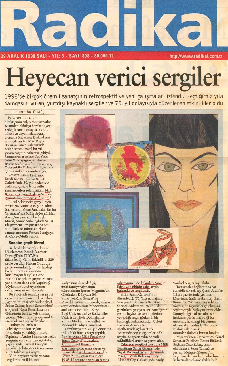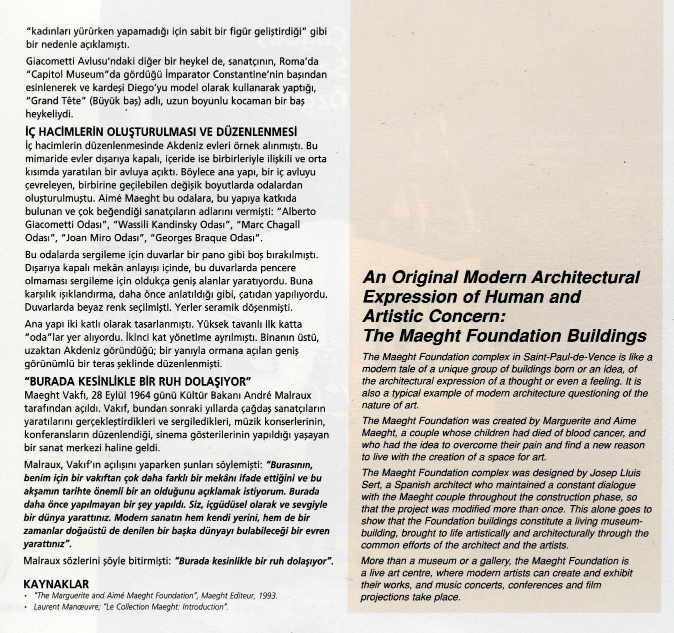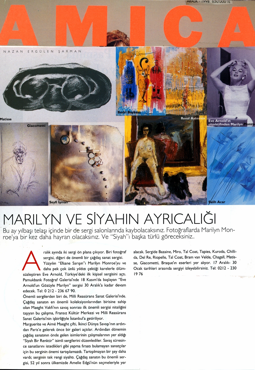 The Maeghts' 1946 exhibition "Black Is a Color," considered one of the most important exhibitions of contemporary art in Paris, will be held again fifty-two years later at the Milli Reasürans Art Gallery in Istanbul. Fifty-two years later, artists such as Bazine, Tapies, Ubac, Miro, Giacometti, Braque, Calder, Matisse, Chagall, Kuroda, and Chillida will be presented to Istanbul art lovers with their drawings, paintings, sculptures, and engravings.
