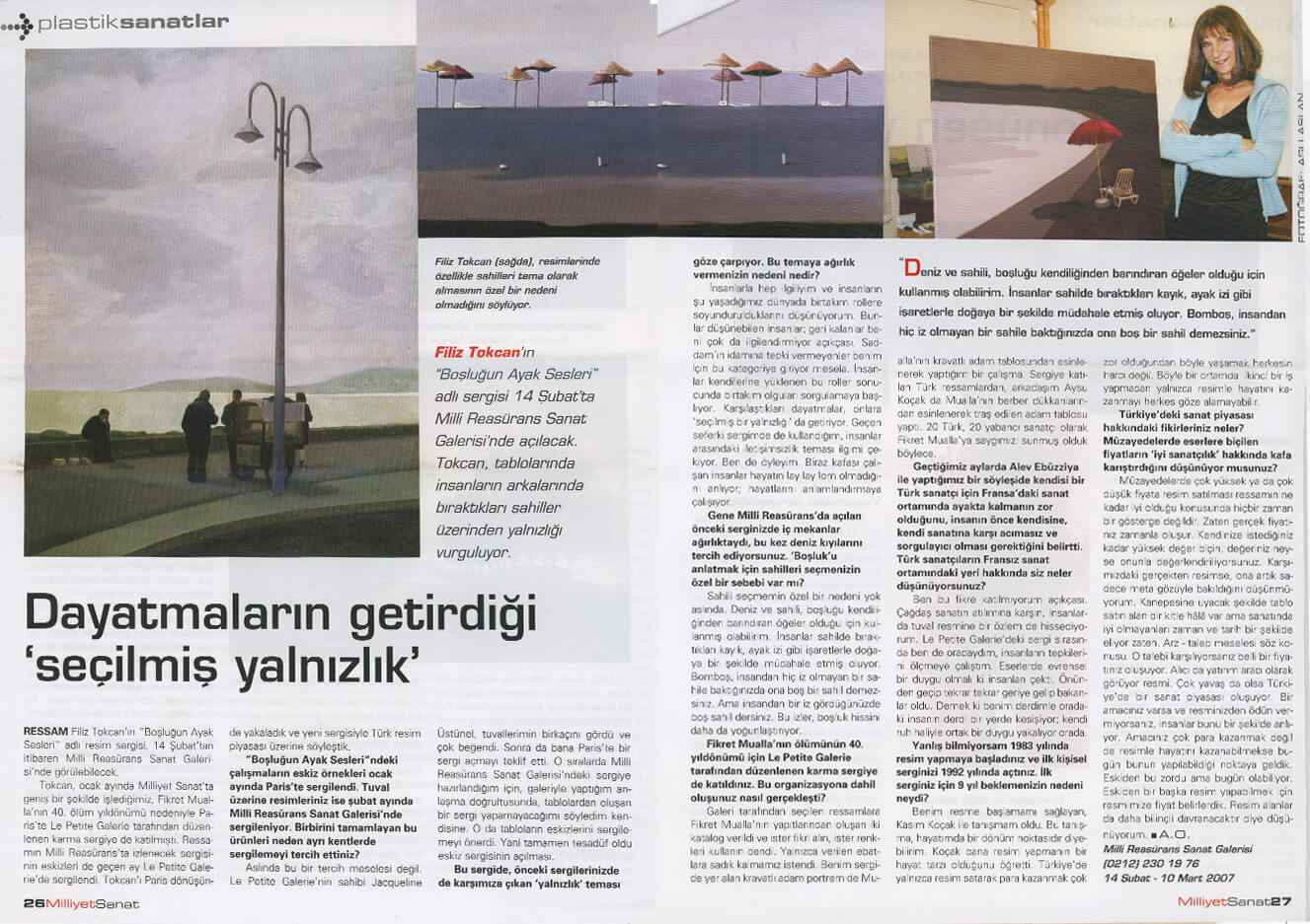 2007 Ocak ayında Paris’te La Petite Galerie’de çalışmaların eskiz örnekleri, 2007 Şubat ayında İstanbul’da Millî Reasürans Sanat Galerisi’nde ise tuval üstüne resimler sergilenecek.