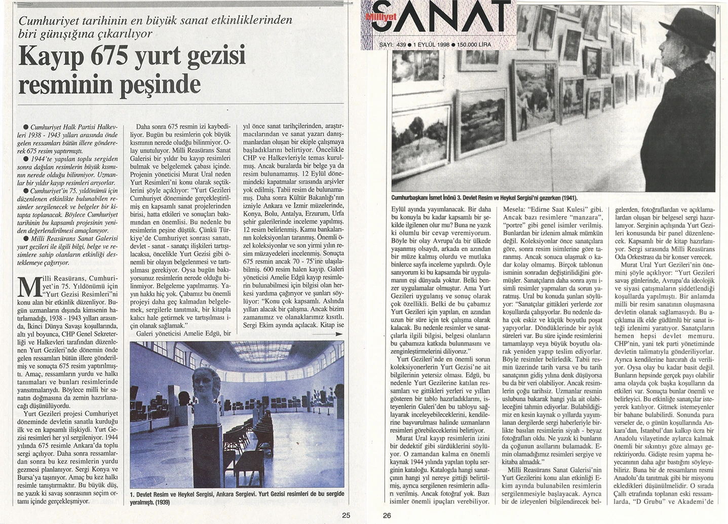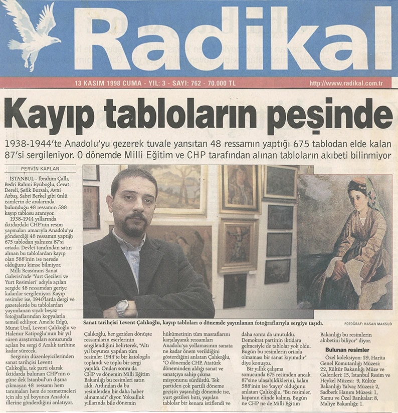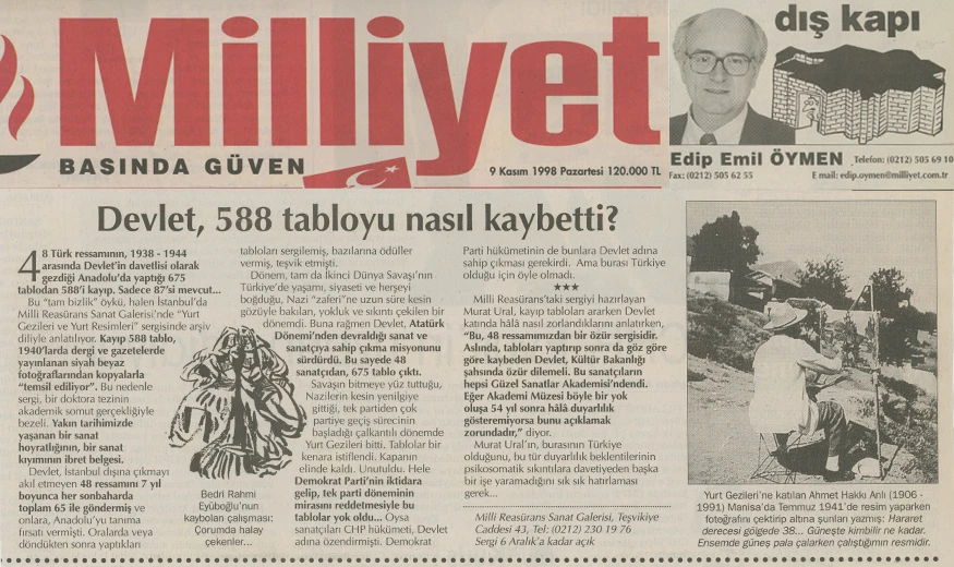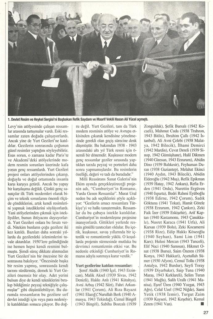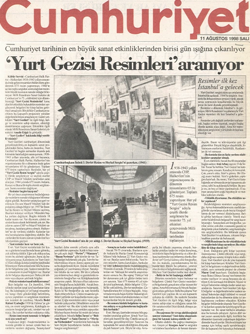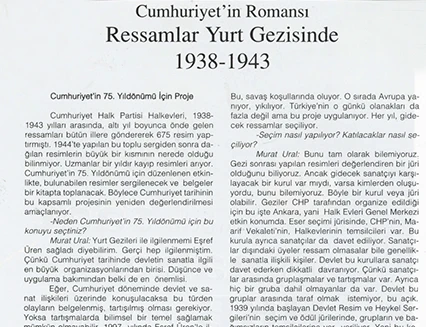 1938–1943 yılları arasında gerçekleştirilen “Yurt Gezileri” projesi, Cumhuriyet’in erken dönem kültür politikalarının en önemli girişimlerinden biri olup, devletin sanat aracılığıyla toplumla kurduğu ilk kapsamlı temaslardan birini temsil eder. Cumhuriyet Halk Partisi Genel Sekreterliği ile Halkevleri’nin işbirliği ile yürütülen proje kapsamında dönemin önde gelen ressamları Anadolu’nun çeşitli kentlerine gönderilmiş, bu geziler sırasında toplam 675 resim üretilmiştir. Söz konusu çalışmalar, 1944 yılında Ankara Sergievi’nde (bugünkü Devlet Opera Binası) düzenlenen sergide bir araya getirilmiştir. Ancak zaman içinde koleksiyonun büyük bir bölümü kaybolmuş; projeye ilişkin en temel kaynak olarak 1944 tarihli sergi kataloğu ve sınırlı sayıdaki belge günümüze ulaşabilmiştir.