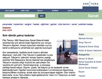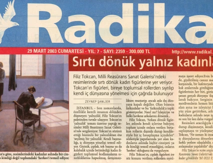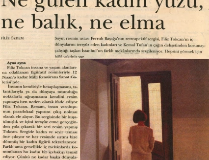 Filiz Tokcan insana ve yaşam alanlarına odaklanan figüratif resimleri, 11 Mart-12 Nisan 2003 tarihleri arasında Millî Reasürans Sanat Galerisi'nde izlenebilir.