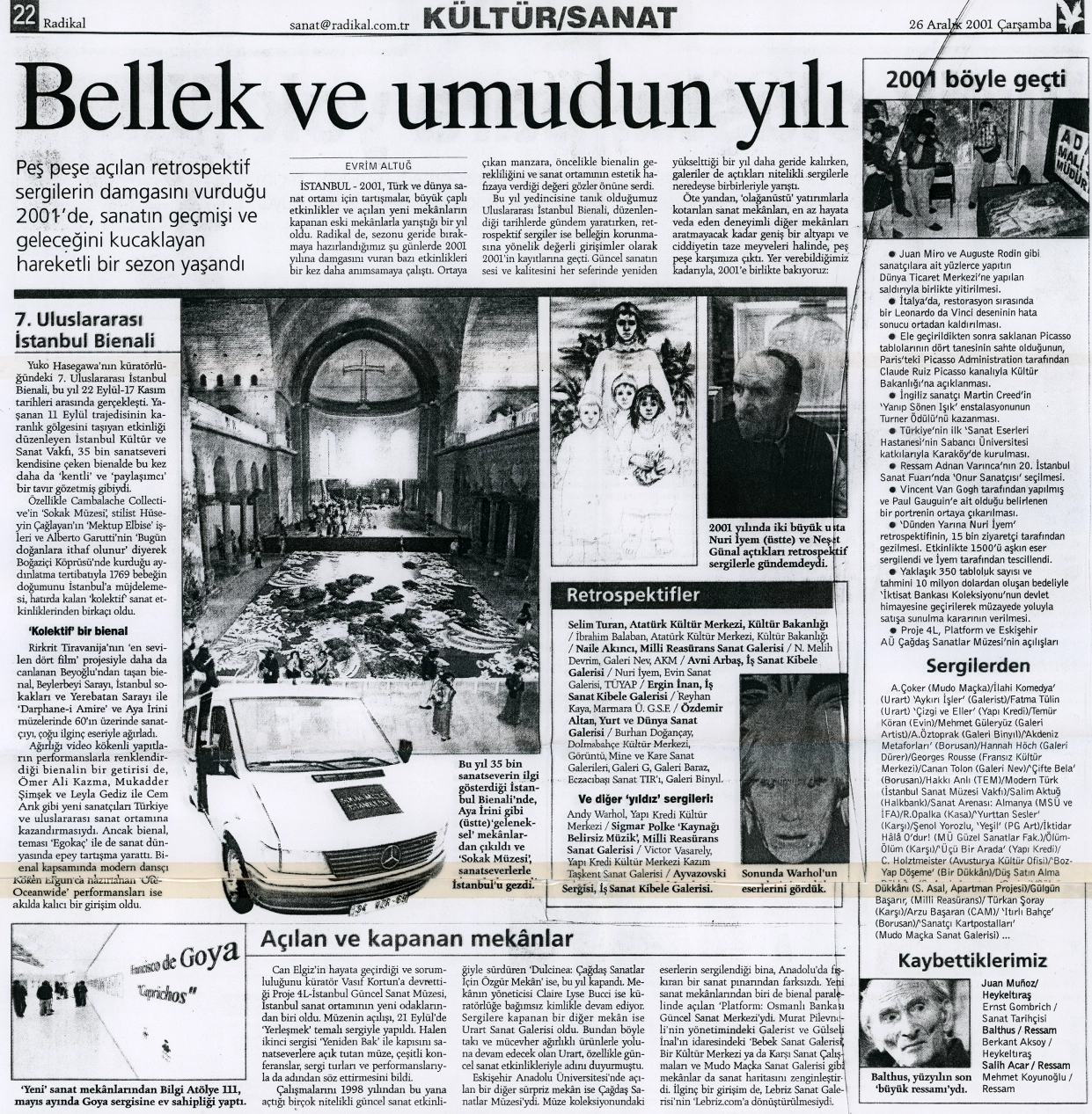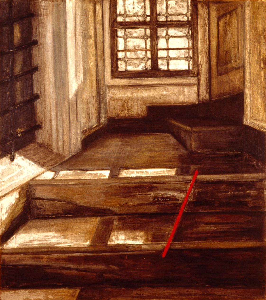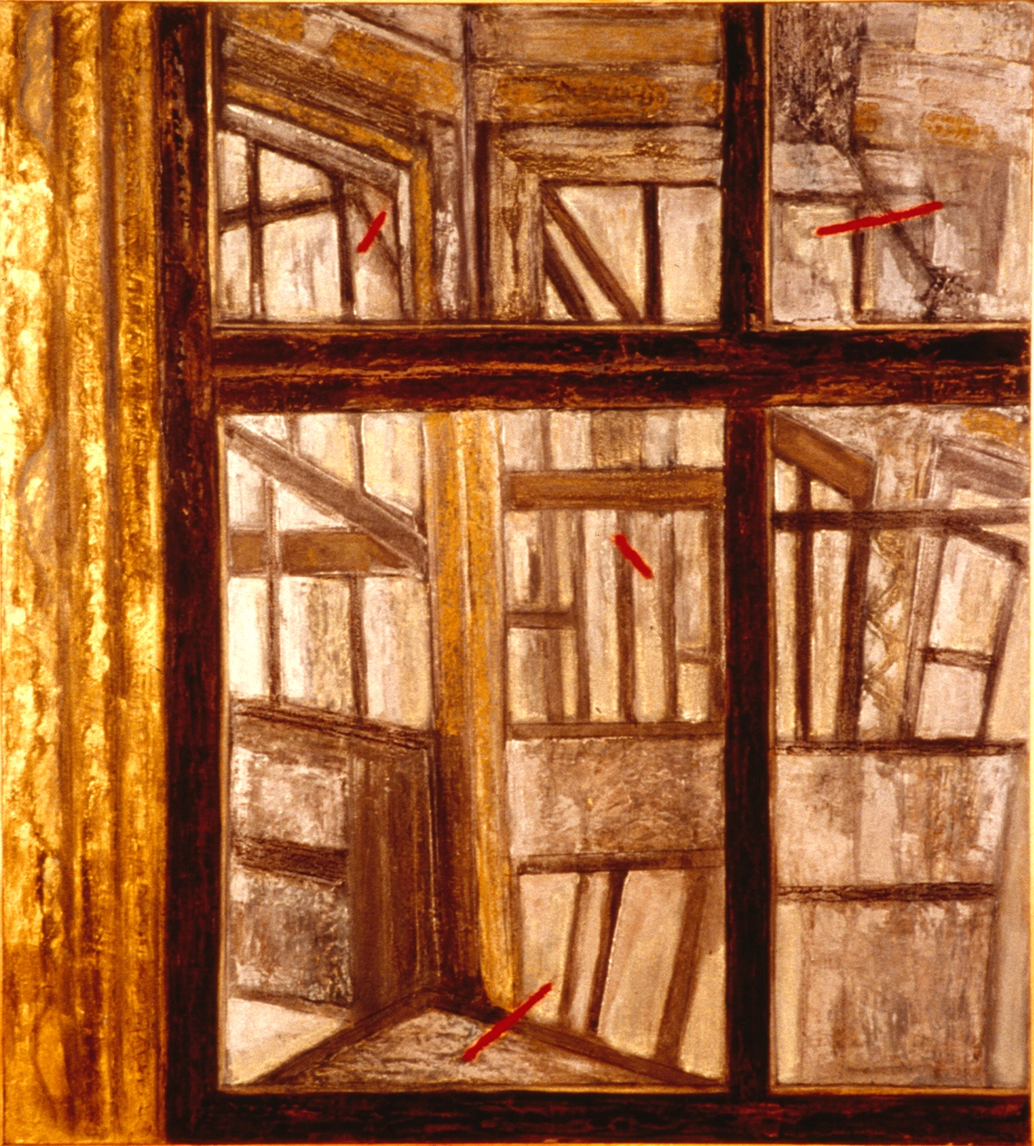 Resimsel bakışını ve resimlerinin ardındaki yaratıcı itkiyi, “Acısını içimde hissettiğim ve her gün değişik biçimde yaşadığım gerçek ilgilendiriyor beni” diye açıklayan sanatçı, önceki sergisinde güncel gerçekliklere yönelmişti. Penceresinden, kapı aralığından, koridordan ya da merdiven boşluğundan gördüğü bir ayrıntıyı tuvaline taşımıştı. Gri renklerin ağır bastığı, ışığın olmadığı ya da ancak süzülerek girebildiği donmuş bir dünyadan son derece gerçek ayrıntılar sanatçının resimlerinde görülen özellikler. Hepsinde insandan izler taşıyan ama insansız mekanlar, biraz önce terkedilmiş gibi. Ürkütücü değil yadırgatıcı resimlerdi bunlar. Tuvallerdeki kırmızı kesik çizgiler izleyenle resmin arasını daha da açıyordu. Sanatçı, ayrıntıdaki sıradan bir gerçeklikte “kendisine acı veren” gerçekliği resimlemişti. İzleyen bu insansız resimlerde kendisini arıyordu ya da kendi insanlık serüvenine doğru açılıyordu.