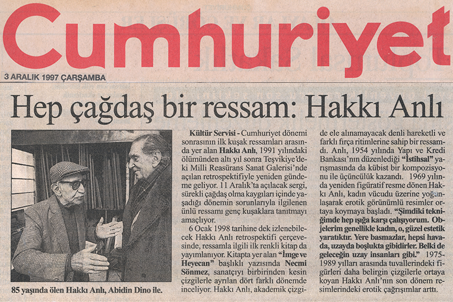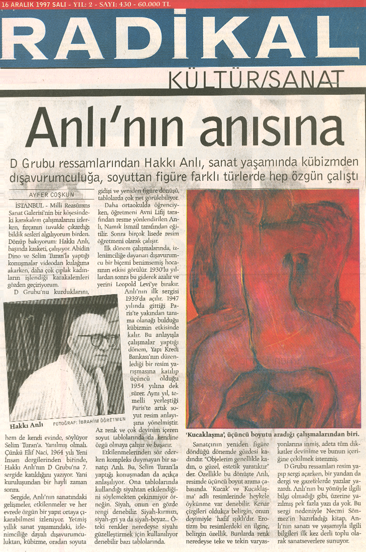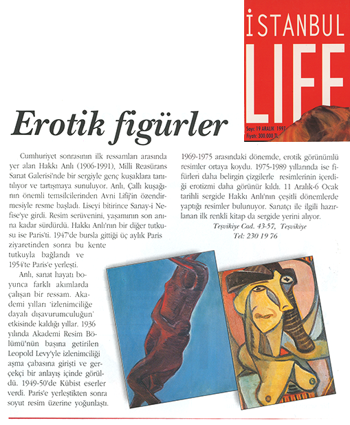 Bu kitap, 11 Aralık 1997 – 6 Ocak 1998 tarihleri arasında Millî Reasürans Sanat Galerisi’nde düzenlenen “Hakkı Anlı” sergisi nedeniyle 500 adet basılmıştır.