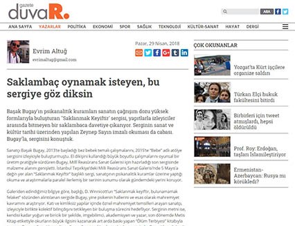 Başak Bugay güzellemeden, yüceltmeden, kanmadan, anlam yüklemeden, maketleri ve bebekleriyle oyun oynamanın gerçeğini suratımıza çarpıvermiştir: oyuna adım atmak, oyuna girmek, oyun olmayan bir şeyin taklididir ve imago ve persona gerektirir. Doğru yerde doğru takılan bir maske, doğru sürülen bir iz, unuttuğumuzun farkında bile olmadığımız şeyleri bize hatırlatabilir. Atalara tapınacağına atalara nasıl tapınmış olduğumuzu bize açabilir. En basit bezden bebekler üzerinden sanat (imge/ kültür/ siyaset/ hukuk) tarihlerini okunur kılınabilir. Bugay’ın işleri, bebekler üzerinden tarihe doğru iz sürmemizi sağlayan birer geçit olabilir.