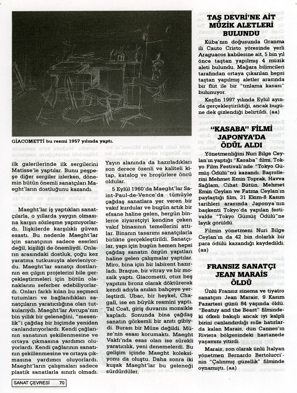 Maeghtların 1946 yılında Paris’te gerçekleştirdikleri çağdaş sanatın en önemli sergileri arasında yer verilen “Siyah Bir Renktir” sergisi, elli iki yıl sonra İstanbul’da Millî Reasürans Sanat Galerisi’nde yeniden gerçekleştirilecek. Elli iki yıl sonra Bazine, Tapies, Ubac, Miro, Giacometti, Braque, Calder, Matisse, Chagall, Kuroda, Chillida gibi sanatçılar desenleri, pentürleri, heykelleri, gravürleriyle İstanbullu sanatseverlerin karşısına çıkacak.