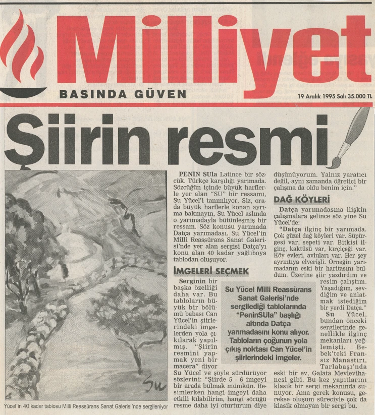 Yaklaşık iki yıldır güneydeki dağ köylerini resimleyen Su Yücel’in sergisi, 19 Aralık–20 Ocak tarihleri arasında Millî Reasürans Sanat Galerisi’nde görülebilecek.