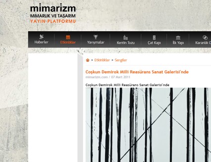 Coşkun Demirok’un tuval ve desenlerinden oluşan ‘yaklaşmalar’ adlı sergisi 9 Mart-2 Nisan 2011 tarihleri arasında Milli Reasürans Sanat Galerisi’nde izlenebilir.