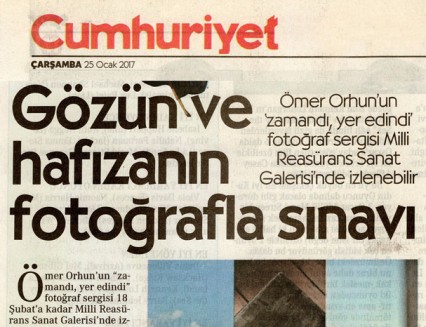 Birhan Keskin, “zamandı, yer edindi” sergisiyle ilgili şöyle bir değerlendirmede bulunuyor: “Günümüzde haddinden fazla ‘görüntü’ye maruz bırakılan insanlar olarak her birimiz için geçerli olan bir şey var: Bir görüntü, bir görüntü olarak kalamıyor zihnimizde, güncelin en tesirlisi bile gözümüze değer değmez eriyor, düşüyor, parçalanıyor. Hızla, unutuşla gözümüzden düşüyor. Ömer Orhun belki tam da bu sebepten bize bu kez bilindik fotoğraflar sunmuyor, fotoğrafı kullanarak, belirli imgelerle zamana dair bir şey söylüyor. Orhun’un bütünlük arayışı bazen bir anıyı, bir odayı, bir geceyi hatırlamaya çalışırken bazen de harflerinde tökezlediğimiz bir kekemelik gibi kendini kuruyor. Gözün ve hafızanın fotoğraf ile sınavı bu. Gözün imkânı sonsuz gibi görünse de öyle değil. Kaydeden hafızanın sınırı da öyle. Saklayabildiği, hatırlayabildiği kadarıyla var.
