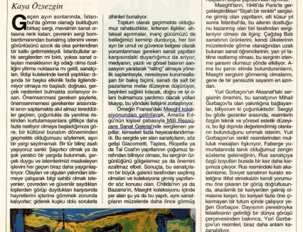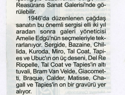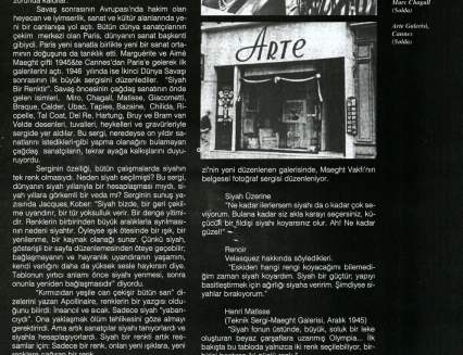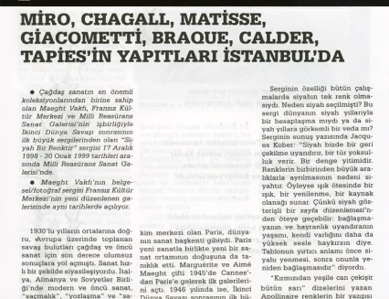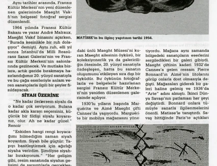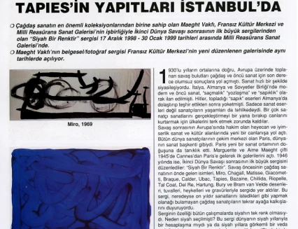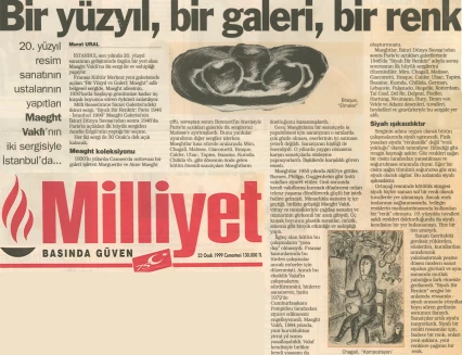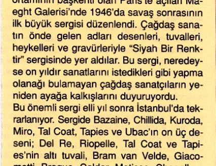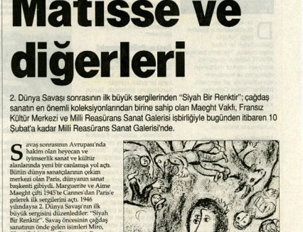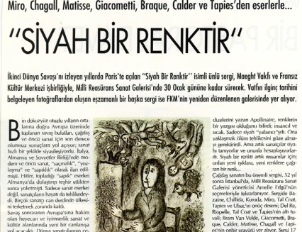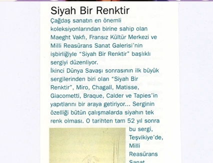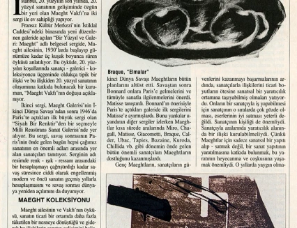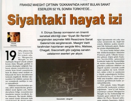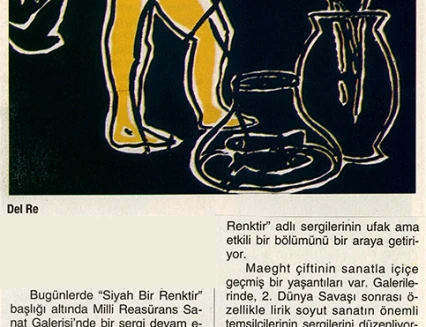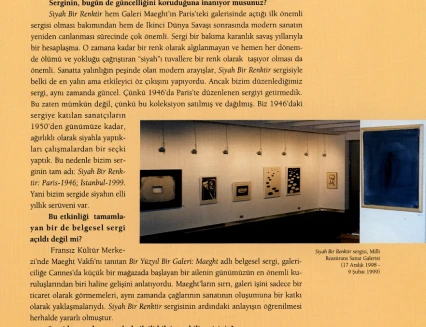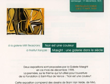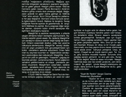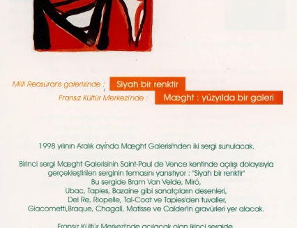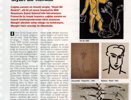 Maeghtların 1946 yılında Paris’te gerçekleştirdikleri çağdaş sanatın en önemli sergileri arasında yer verilen “Siyah Bir Renktir” sergisi, elli iki yıl sonra İstanbul’da Millî Reasürans Sanat Galerisi’nde yeniden gerçekleştirilecek. Elli iki yıl sonra Bazine, Tapies, Ubac, Miro, Giacometti, Braque, Calder, Matisse, Chagall, Kuroda, Chillida gibi sanatçılar desenleri, pentürleri, heykelleri, gravürleriyle İstanbullu sanatseverlerin karşısına çıkacak.