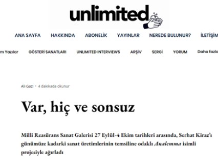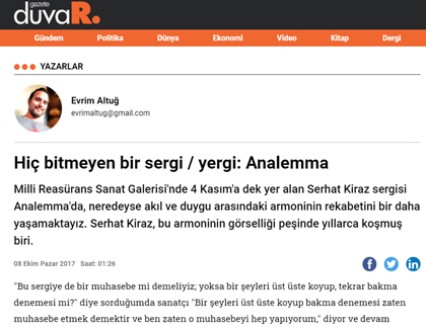 Kiraz “Analemma” sergisinde hem en yeni araştırmalarını sunuyor, hem bu noktaya nerelerden geçerek geldiğini gösteriyor ve kendi “tuhaf sekiz”İni, yani Analemma eğrisini görünür kılıyor.